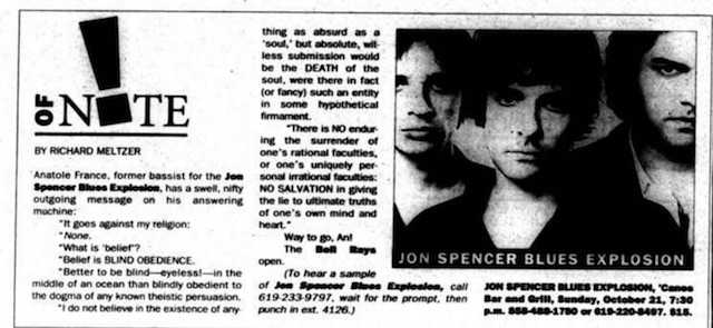 The Jon Spencer Blues Explosion show at Cane’s, 3105 Ocean Front Walk, Mission Beach, San Diego, CA, US with The Bellrays on 21 October 2001.