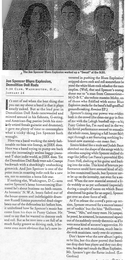 | Review of The Jon Spencer Blues Explosion live at the 9:30 Club, Washington, D.C. US with Demolition Doll Rods supporting.