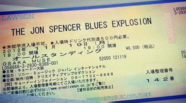 Ticket for The Jon Spencer Blues Explosion show at Muse, Osaka, Japan with King Brothers on 19 November 2012.