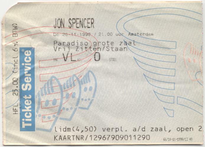 The Jon Spencer Blues Explosion show at Paradiso, Amsterdam, Netherlands on 26 November 1998.