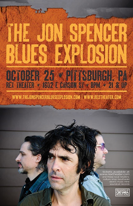The Jon Spencer Blues Explosion show at Rex Theatre, 1602 East Carson Street, Pittsburgh, PA 15203 with Shockwave Riderz.