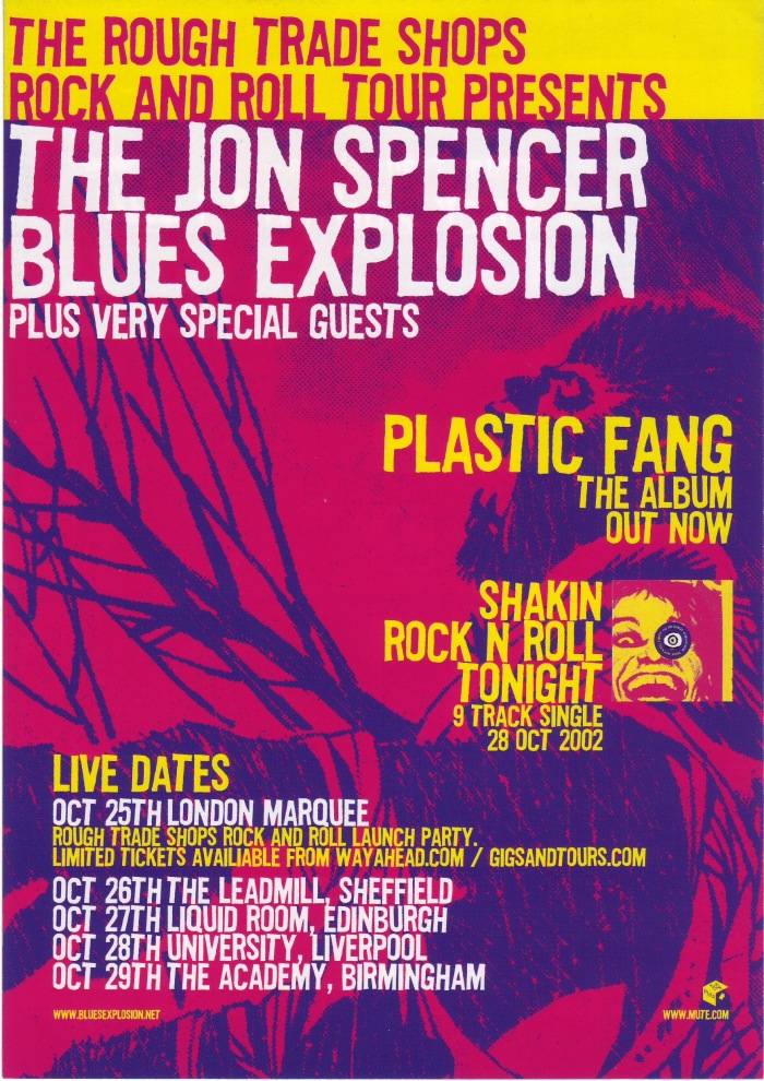 The Jon Spencer Blues Explosion show at The Marquee Club, Parkfield Street, London, N1, UK on 25 October 2002.