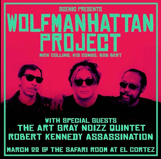Jon Spencer (DJ Set) at the Wolfmanhattan Project show at The Safari Room at El Cortez, 17 Ingraham Street, Brooklyn, New York 11206, US with Art Gray Noizz Quintet and the Robert Kennedy Assassination on 22 March 2018.