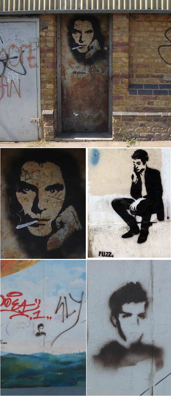 | Various photos of stencilled graffiti featuring the image of Jon Spencer.