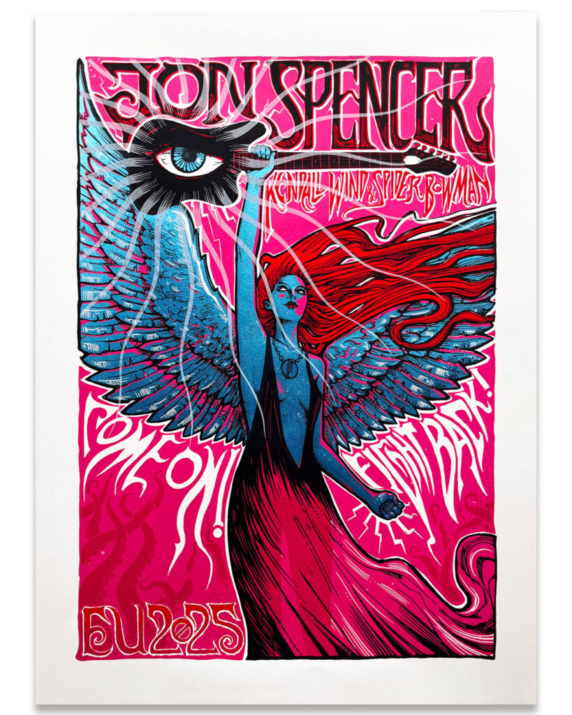 It’ll be up for grabs at the Jon Spencer’s merch table during the tour and on our website starting June 22nd. Don’t miss out on this exclusive piece celebrating Jon Spencer’s electrifying music journey across Europe with Kendall Wind & Spider Bowman !” – Malleus