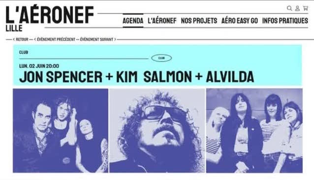 Jon Spencer show at L’Aeronef, 168 Avenue Willy Brandt, Centre Commercial Euralille, 59777 EURALILLE, France with Kim Salmon and Alvilda on 2 June 2025.