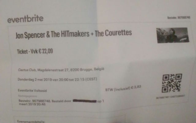 Jon Spencer & the HITmakers show at Cactus Muziekcentrum, Brugge, Belgium with The Courettes on 2 May 2019.