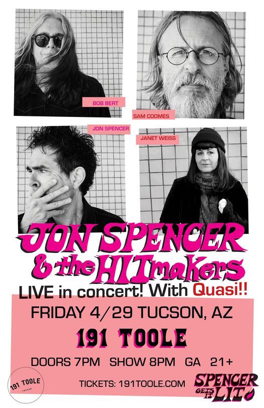 EVENT PAGE: https://www.191toole.com/events/jon-spencer-the-hitmakers-w-quasi-191-toole/