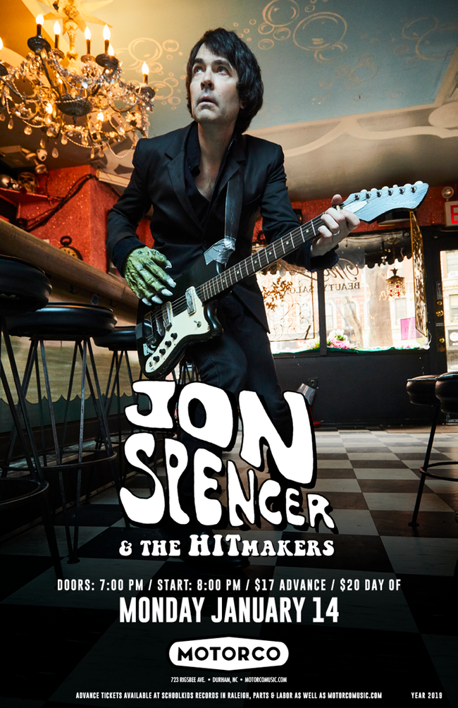 Jon Spencer and The HITmakers show at Motorco Music Hall, 723 Rigsbee Ave, Durham, North Carolina 27701, US with Dex Romweber Duo on 14 January 2018.