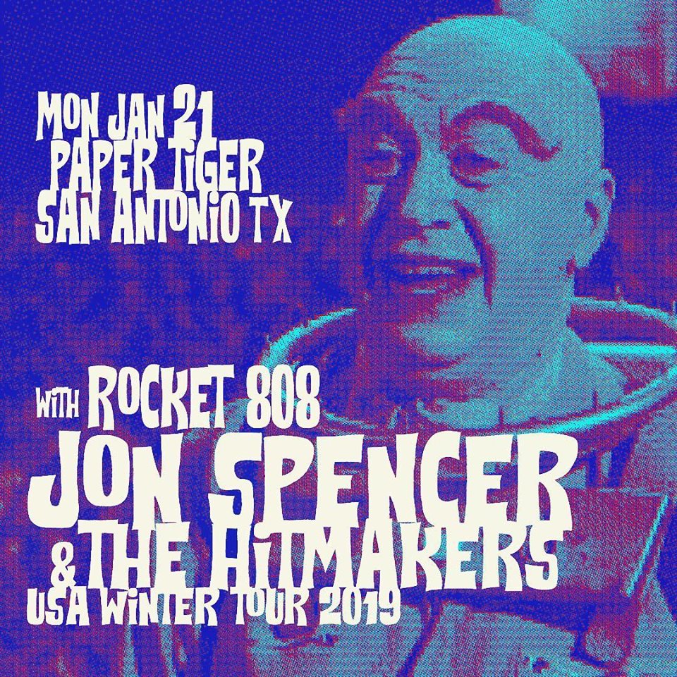 Jon Spencer & The HITmakers show at Paper Tiger, 2410 North Saint Mary’s St. San Antonio TX 78212, US with Rocket 808 on 21 January 2019.