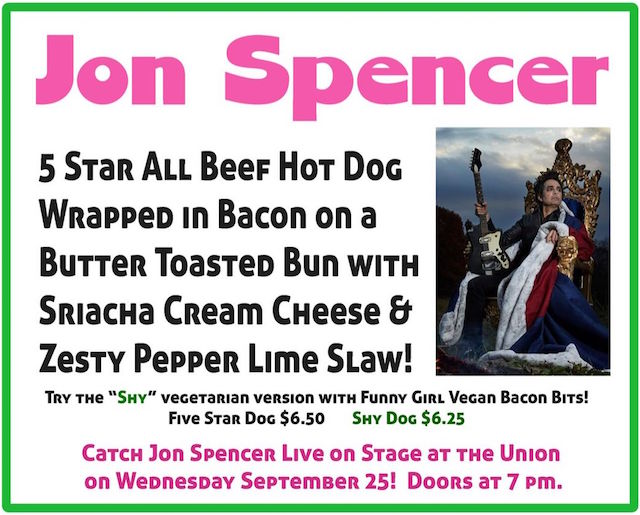 nb. O’Betty’s Red Hot Burlesque-themed restaurant in Athens, OH had a Jon Spencer-themed hot dog: