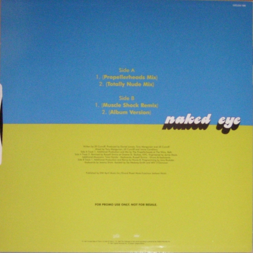 A1. Naked Eye (The Propellerheads Mix) Writer: Jill Cinniff Published: EMI April Music Inc./ Grand Royal Music/Luscious Jackson Music Produced: Daniel Lanois/Tony Mangurian/Jill Cunniff Mixed: Tony Mangurian/Jill Cunniff/Jamie Candiloro Additional Production/Mix: The Propellerheads at The Wurx, Bath (p) 1997 The copyright in this sound recording is owned by Capitol Records Inc. © 1997 Capitol Records Inc. A2. Naked Eye (Totally Nude Mix) B1. Naked Eye (Muscle Shock Remix) B2. Naked Eye |