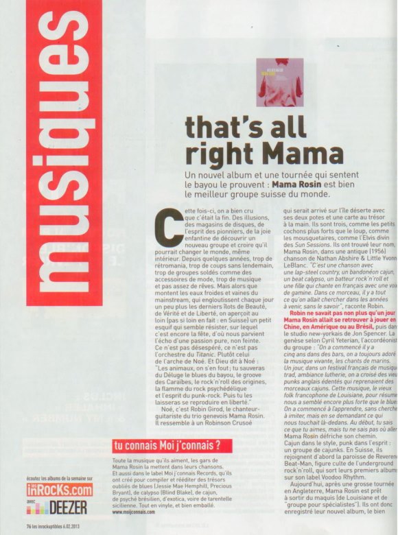 | 6 February 2013 | Les Inrockuptibles | N°897 |