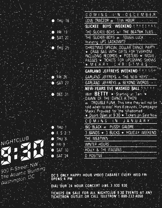 Pussy Galore show at 9:30 Club, Washington, DC, US with Big Black on 1 January 1987.