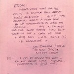 Flyer Artwork: Lenny Sblendorio Pussy Galore line-up: Jon Spencer This show is mentioned during their performance on the Uncle Floyd Show (April 1987). Image shows flyer with handwritten note from Jon Spencer on rear. Note Reads: “Eddie: – Jon Spencer/SHOVE PS – If you do review the rec – |