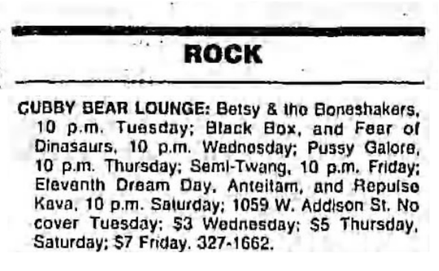 Pussy Galore show at Cubby Bear Lounge, Chicago, IL, US on 23 July 1989.
