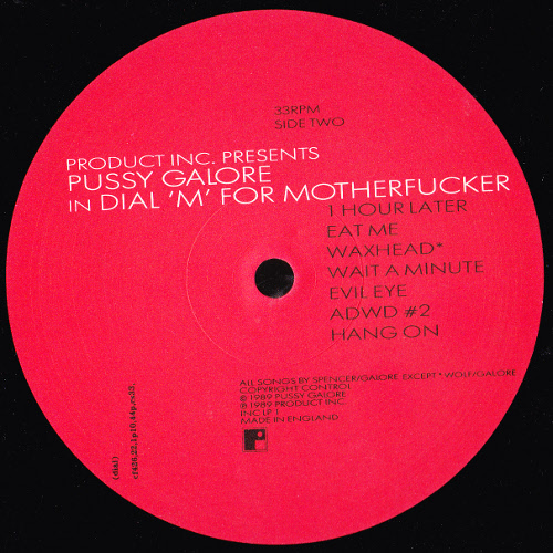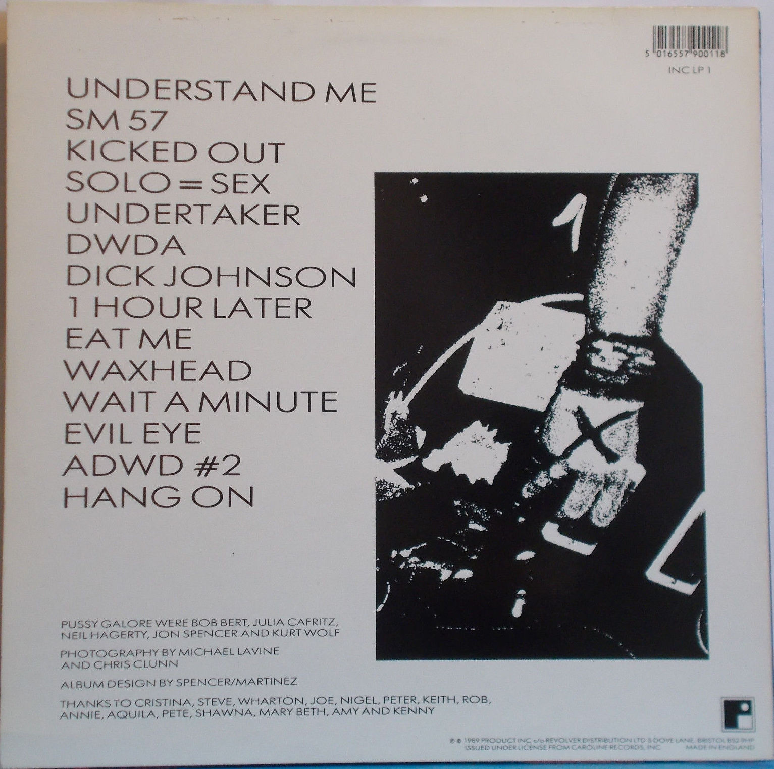 “Pussy Galore were Bob Bert, Julia Cafritz, Neil Hagerty, Jon Spencer and Kurt Wolf” All songs by Spencer/Galore except ‘Waxhead’ by Wolf/Galore Copyright Control. |