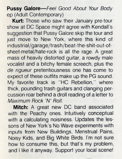 | Short review of Pussy Galore – Feel Good About Your Body from Greed fanzine issue number 1. |