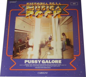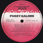 LABELS: “Quedan reservados todos los derechosdel productor fonografico y del propietario de la obragrabada salvo autorizaction quedan prohibidos la duplication. Alquiler y prestamo. Asi como la utilizacion de este disco para la ejecucion publica o radiodifusion. Caroline. La grande storia del Rock, Pussy Galore, GSR – 007, STEREO 33, CAROL 1618, [A/B, tracklisting, writing credits, run times], Recorded by Pussy Galore in NYC, 1990 with Peter Arsenault at Moon-Jem Studios, Danceteria” [Titles, tracklisting, song credits] REAR: [Titles, tracklisting, song credits] |