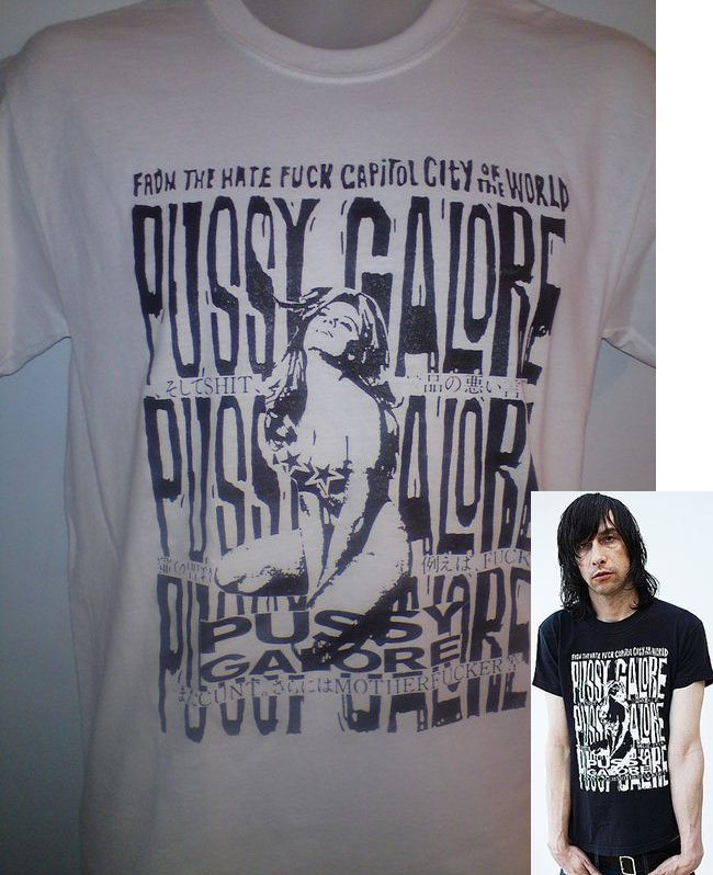 | Unofficial Pussy Galore shirt using the design from the Maximum Penetration video and This Friday Night Only LP.