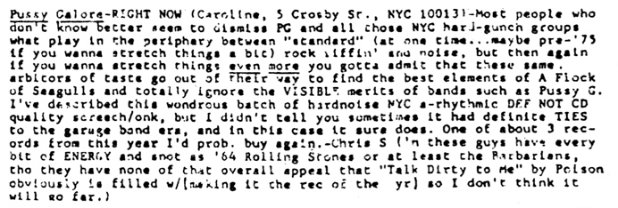 | Review of the Pussy Galore album Right Now! from Phudd!. |