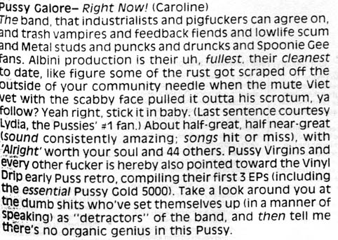 | Review of Pussy Galore album Right Now! from Pulsebeat. |