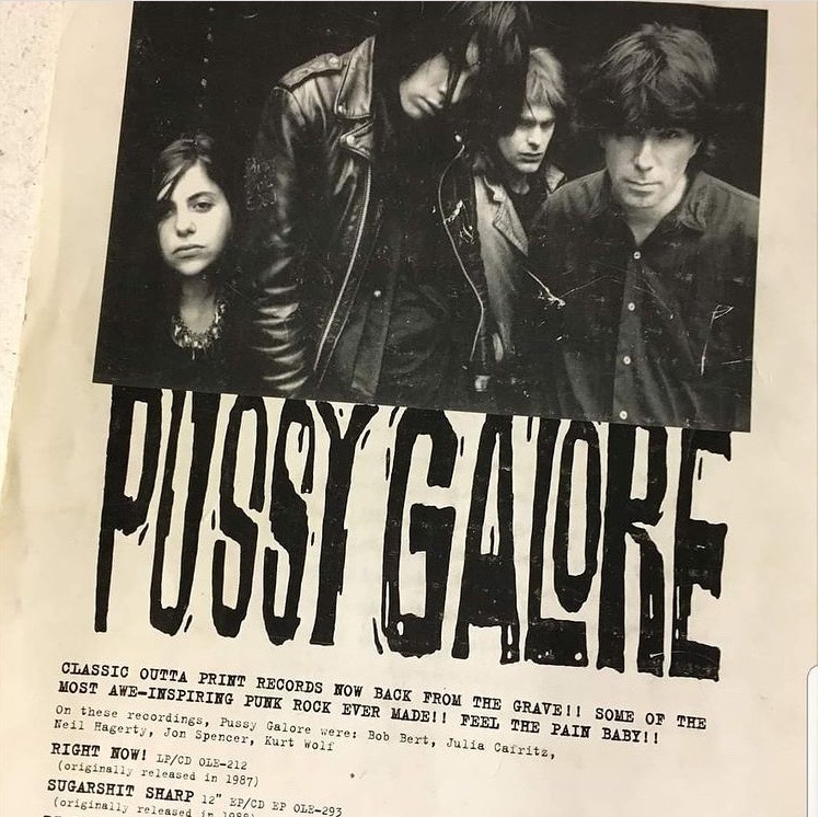 | Advertisement to promote the 1998 reissues of the Pussy Galore albums Sugarshit Sharp, Right Now! and Dial ‘M’ For Motherfucker.