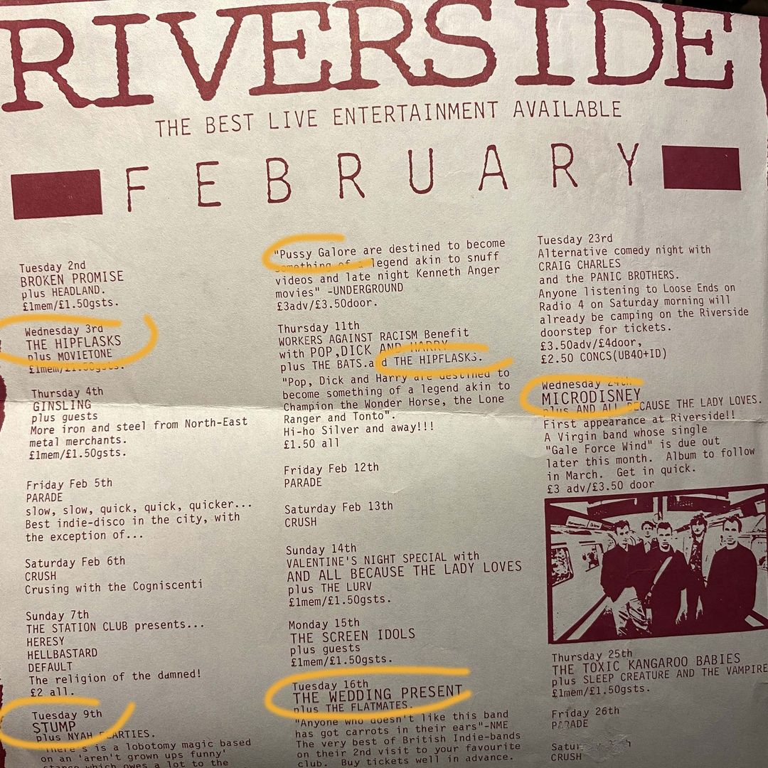 Pussy Galore show at Riverside, Newcastle, UK on with Dead Flowers and The Serpents 10 February 1988.