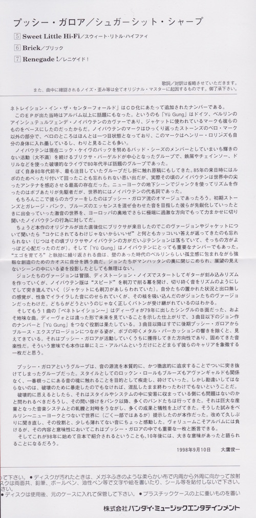 | Japanese CD reissue of Sugarshit Sharp, issued in standard case with obi strip and insert.