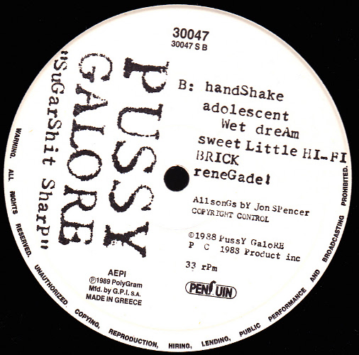 Guitar/Vocals: Jon Spencer Guitar/Vocals: Julia Cafritz Guitar: Kurt Wolf Bob Bert: Percussion Recorded with Steve Albini and Wharton Tiers A1. Yü-Gung B1. Handshake B2. Adolescent Wet Dream B3. Sweet Little Hi-Fi B4. Brick B5. Renegade! |