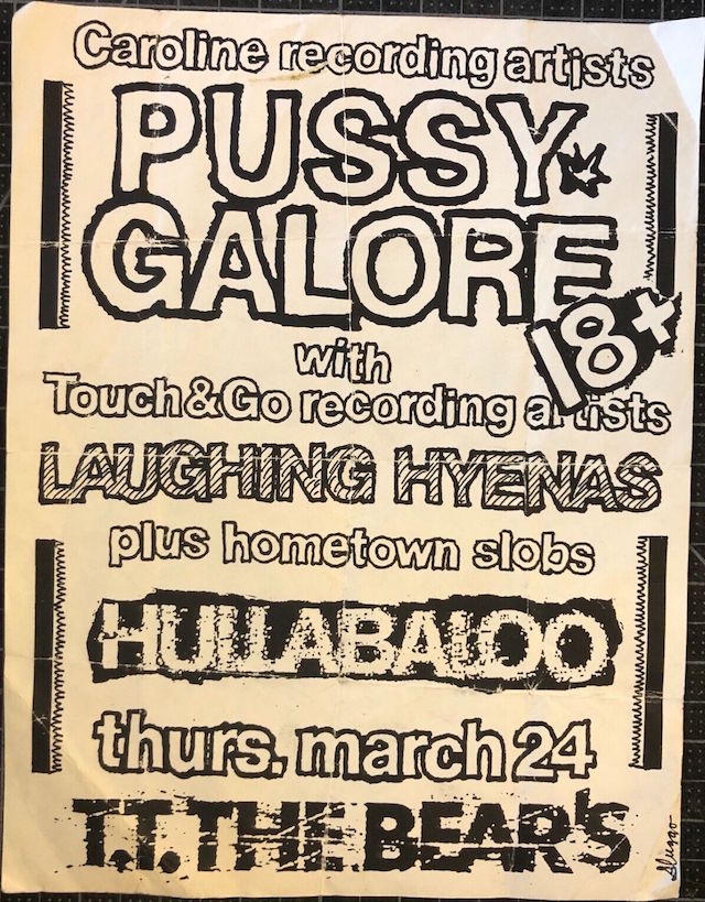 Pussy Galore show at T.T. The Bears, Cambridge, MA, US with Laughing Hyenas, Hometown Slobs and Hullabaloo on 24 March 1988.