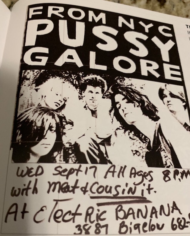 Pussy Galore show at The Electric Banana, 3887 Bigelow Boulevard, Pittsburgh, Pennsylvania, US with Cousin It and Meat on 17 September 1986.