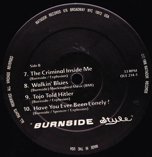 Vocals/Guitar: R.L. Burnside Guitar: Kenny Brown Guitar/Harmonica/Vocals/Casio SK-1: Judah Bauer Drums: Russell Simins Guitar/Vocals/Drums/Theremin: Jon Spencer Recorded on the afternoon of 2-6-96 at Lunati Farms in Holly Springs, MS. Produced: Matthew Johnson 01. Goin’ Down South 02. Boogie Chillen 03. Poor Boy 04. 2 Brothers 05. Snake Drive 06. Shake ‘Em On Down 07. The Criminal Inside Me 08. Walkin’ Blues 09. Tojo Told Hitler 10. Have You Ever Been Lonely? |