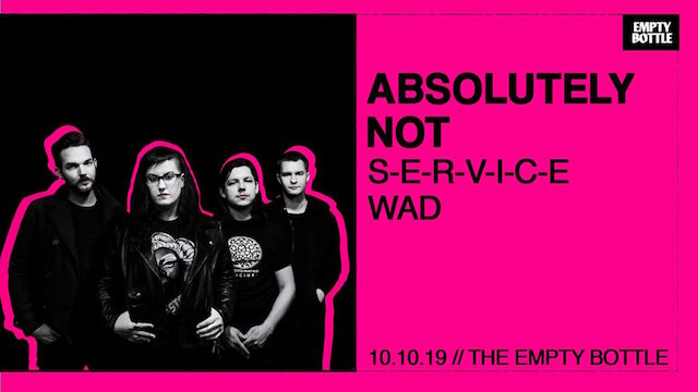 S-E-R-V-I-C-E show at The Empty Bottle, 1035 N. Western Ave., Chicago, IL, 60622, US with Absolutely Not (headline) and WAD on 10 October 2019.
