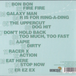 | 01. Bon Bon 02. Fire Fire 03. Galaxy Man 04. R is for Ring-a-Ding 05. The Uppercut 06. Dog Hit 07. Don’t Hold Back 08. Too Much, Too Fast 09. Aapie 10. Dirty 11. Racer X 12. Action 13. Eat Here 14. Stop Now 15. Er Ez Ex |