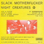 A. Slack Motherfucker Writers: Superchunk Published: All The Songs Sound The Same Music (BMI) Recorded: Duck-Kee Studios (January 1990) B. Night Creatures (c) & (p) Merge Records Box 1235 Chapel Hill, N.C. 27514 |
