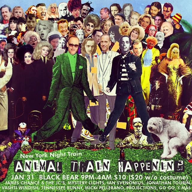 “Get your cha cha heels on for Mortville’s Animal Train Party this Saturday night at 9pm. DJs Jonathan Toubin, Ian Svenonius, Tennessee Bunny and Vashti Windish. Come dressed as your favorite John Waters character and get in for $10. No costume $20. #jameschance #johnwaters #pinkflamingos #williamsburg #brooklyn” – http://instagram.com/p/ycVNCuC8Y3/