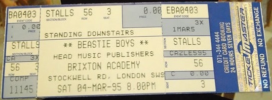 The Jon Spencer Blues Explosion show at Brixton Academy, London, UK with Beastie Boys (headlining) and Hurricane on 4 March 1995.