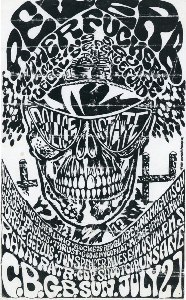 “By Any Means Green!” benefit show with Cop Shoot Cop, Lubricated Goat, Rat.At.Rat.R, Reverb Motherfuckers, Jesus Christ, Grade A, PMS, Menace Dement, Radicts, Motor Morons, John Moore, W.O.O., Eric Ambel, Purple Geezus, Thrust, Unsane, God is My Co-Pilot with Performances by Ann Magnuson, Elmer Lang, Alien Comic, Rockets Redlarge and emcee’s Jennifer Blowdryer and Marguerite Van Cook.