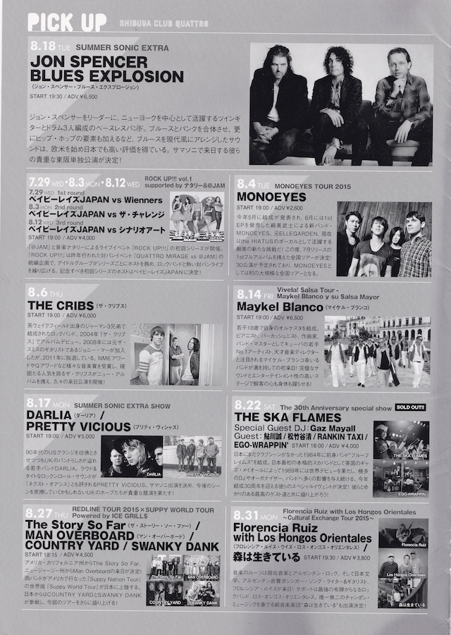 The Jon Spencer Blues Explosion show at Club Quattro, 5F, 32-13-4 Udagawacho, Shibuya-ku, Tokyo, Japan with The Birthday on 18 August 2015.