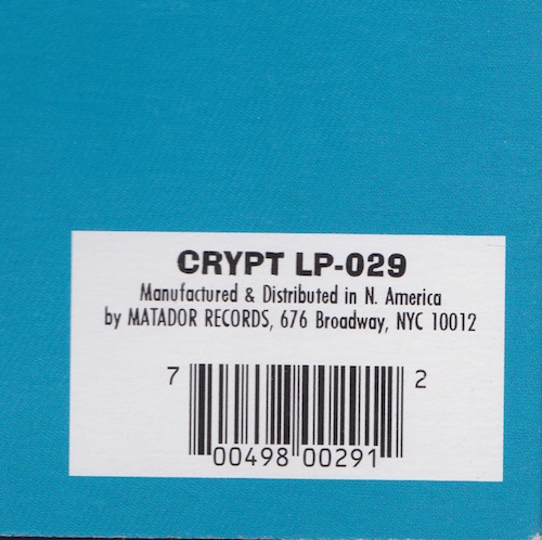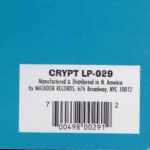 *different labels; smaller Crypt logo, includes the word “Records” / band name on two lines / text aligned left