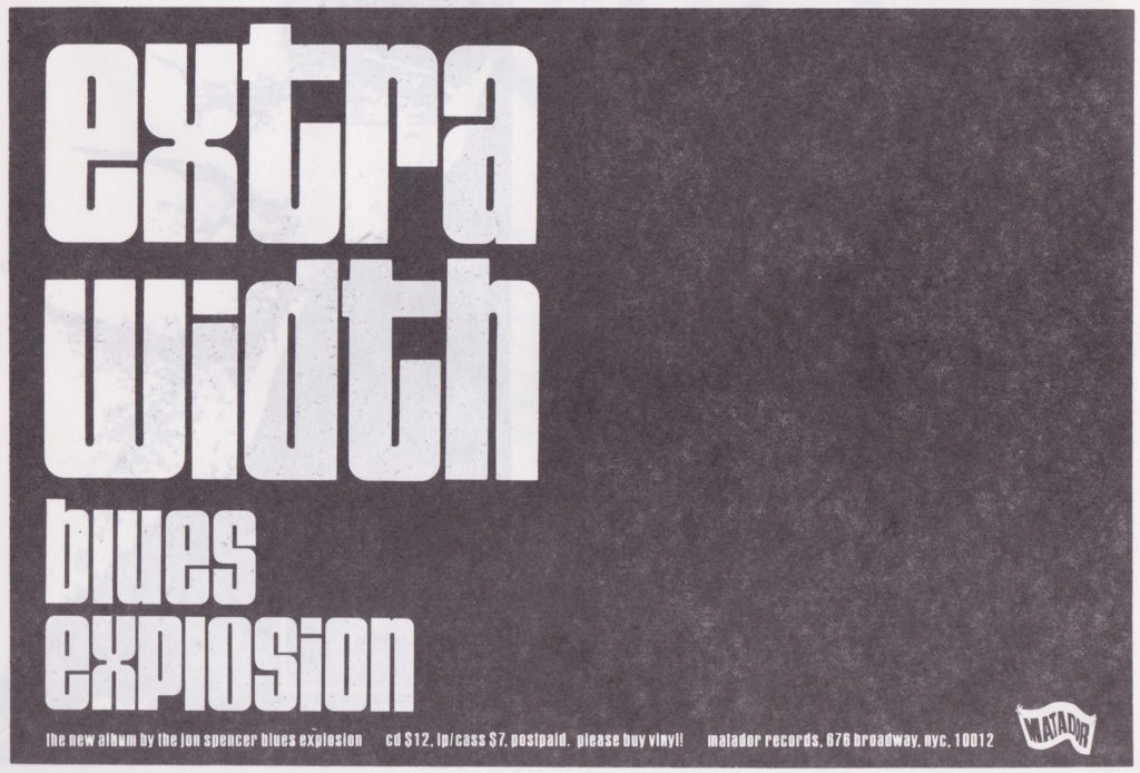 | Advertisement from Bad Vibe #2 for The Jon Spencer Blues Explosion album Extra Width. |