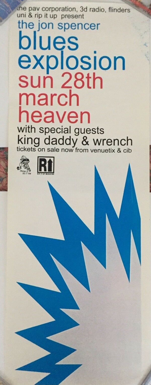 The Jon Spencer Blues Explosion show at Heaven, Adelaide, Australia with King Daddy and Wrench on 28 March 1999.