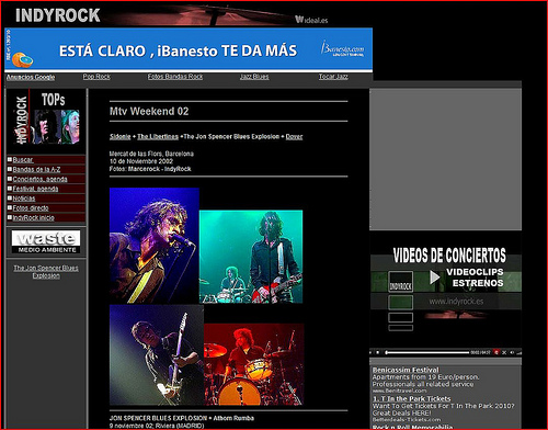 | Spanish language reviews of The Jon Spencer Blues Explosion gigs at Mercat de las Flors, Barcelona and Riviera, Madrid on 9 / 10 November 2002.