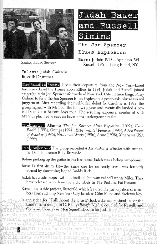 | 128 page book (w/200 b/w photos) measuring 5 1/2 x 8 1/4 inches by Guy Oseary featuring a chapter on Judah Bauer and Russell Simins of The Jon Spencer Blues Explosion.