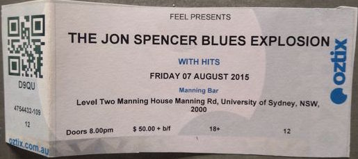 The Jon Spencer Blues Explosion show at Manning Bar, Level Two Manning House Manning Rd, University of Sydney, Sydney, Australia with HITS on 7 August 2015.
