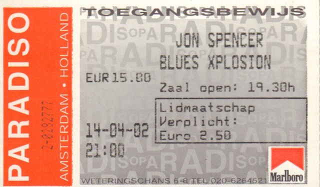 The Jon Spencer Blues Explosion show at Paradiso, Amsterdam, The Netherlands on 14 April 2002.