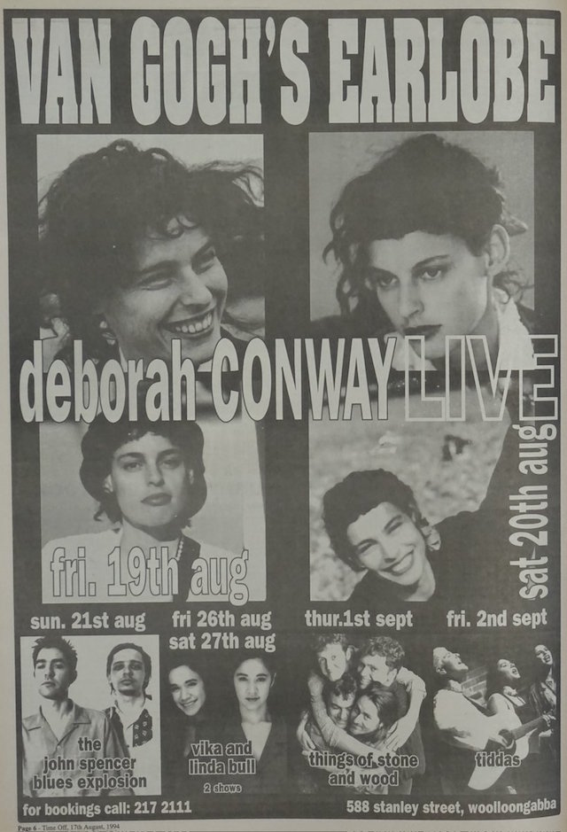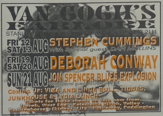 The Jon Spencer Blues Explosion show at Van Goghs Ear Lobe, Brisbane, Australia with Regurgitator and The Disciples on 21 August 1994.