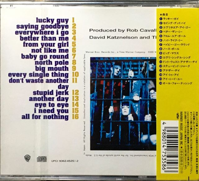 Electric Bass/Stupid Vocals: Ronnie Barnett Drums/Cymballs/Percussion/Hominy Vocals: Criss Crass Vocals/Lead Guitar: Kim Shattuck Rhythm Guitar/No Vocals: Melanie Vammen Special Guests: Producers: Rob Cavallo, David Katznelson and The Muffs. 01. Lucky Guy 02. Saying Goodbye 03. Everywhere I Go 04. Better Than Me 05. From Your Girl 06. Not Like Me 07. Baby Go Round 08. North Pole 09. Big Mouth 10. Every Single Thing 11. Don’t Waste Another Day 12. Stupid Jerk 13. Another Day 14. Eye To Eye 15. I Need You 16a. All For Nothing 16b. Untitled |