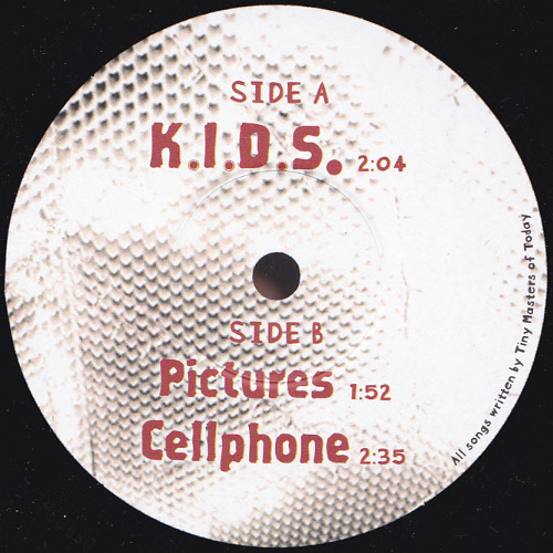 A1. K.I.D.S. Vocals/Guitar: Ivan Vocals/Bass/Keyboards/Percussion: Ada Writers: Tiny Masters of Today Recorded/Produced: Tiny Masters of Today, Brooklyn, NY. Mastered: Paul Gold http://vinylmastering.net Run Time: 2:04 B1. Pictures B2. Cellphone |